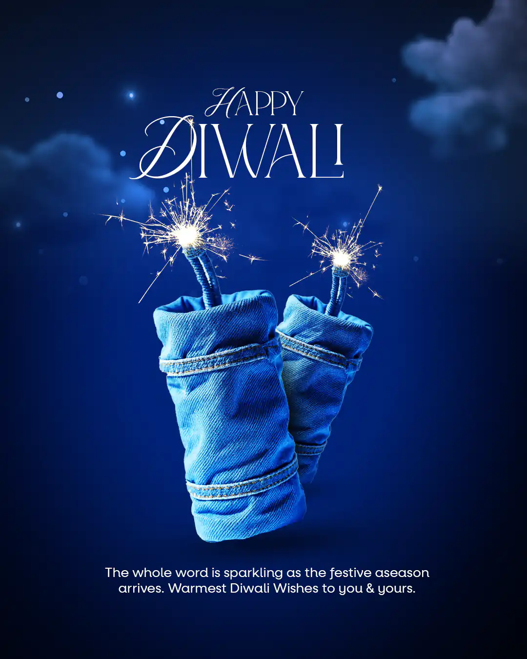 Denim Cracker Theme Diwali Celebration PSD Template with Night Sky Background fashion shopping mall clothing