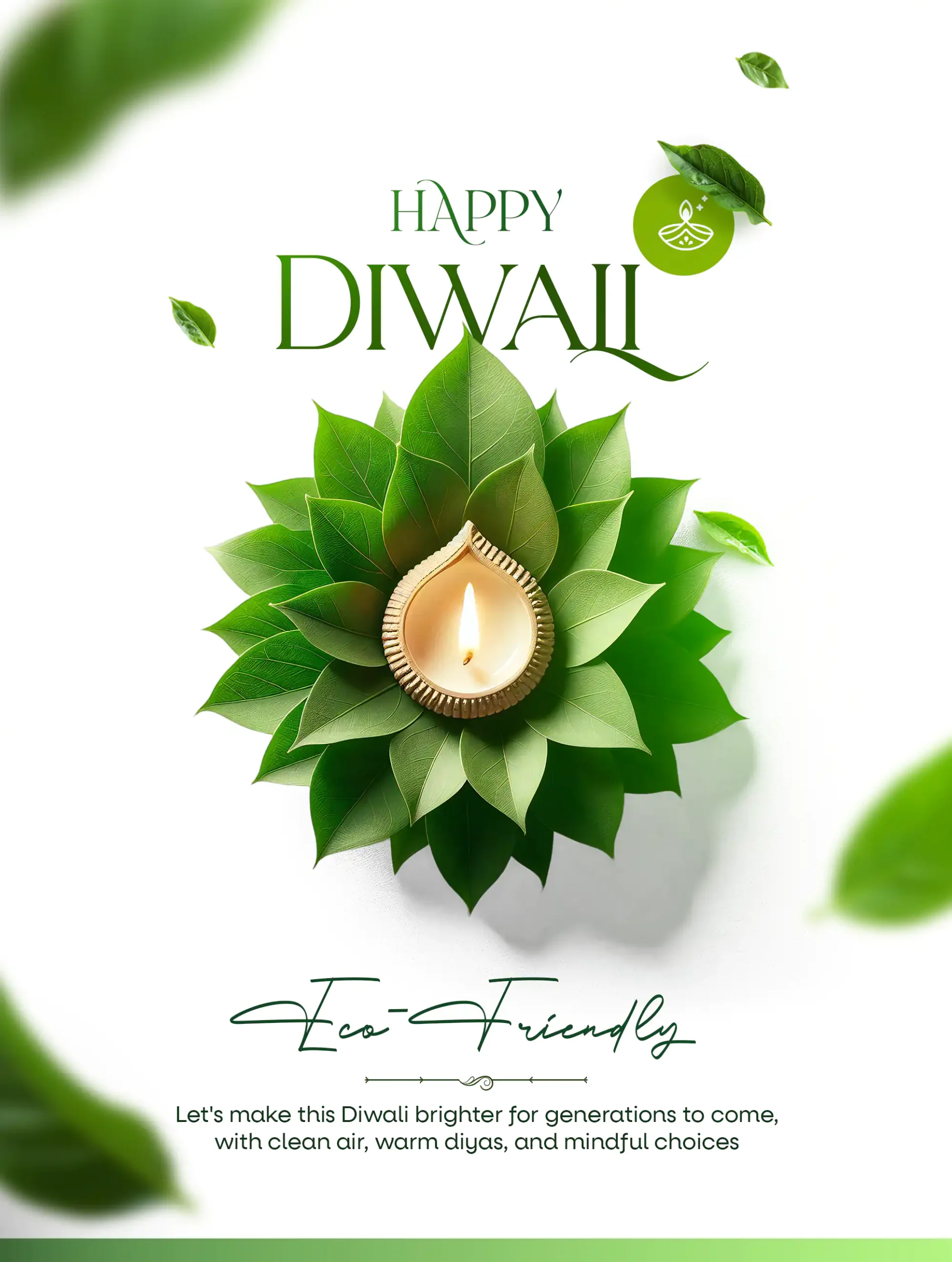 Eco-Friendly Happy Diwali PSD Template – Nature-Inspired Diya in a Green Leaf Lotus