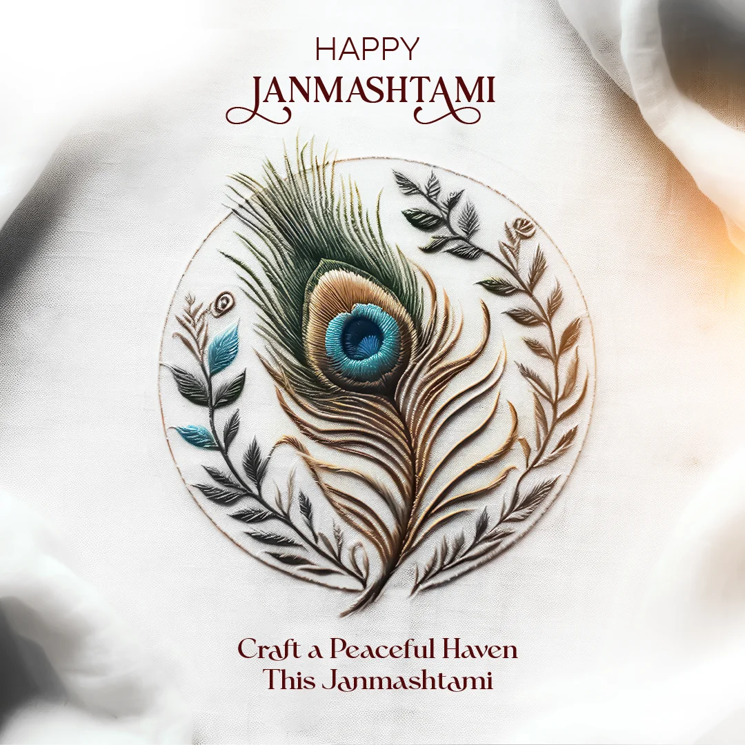 Happy Janmashtami Poster PSD – Elegant Peacock Feather Design for Krishna Festival for Clothing & Fashion Industry