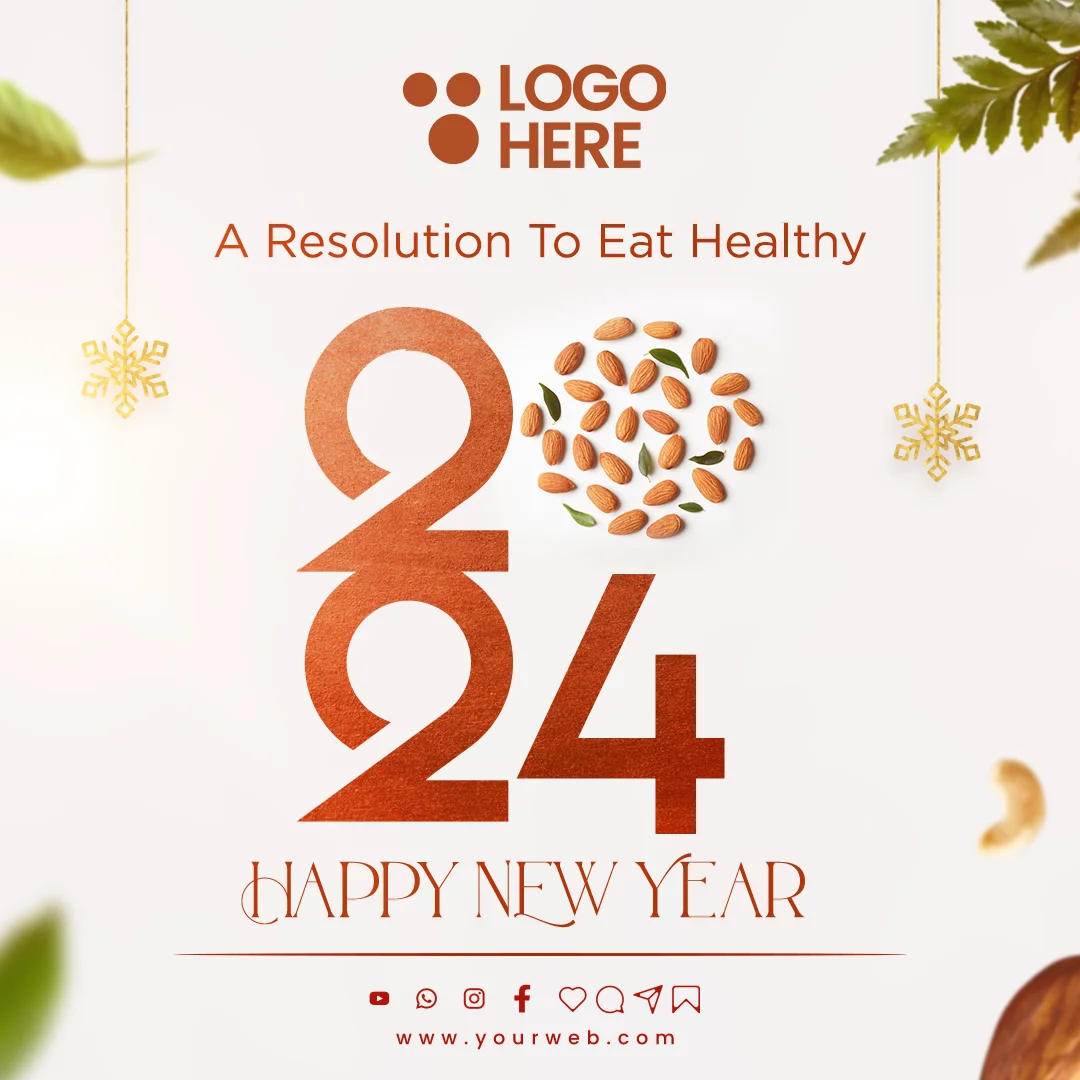 New Year Healthy Eating PSD Template With creative Dryfruits Design For Food & Consumer & Dryfruit Outlets