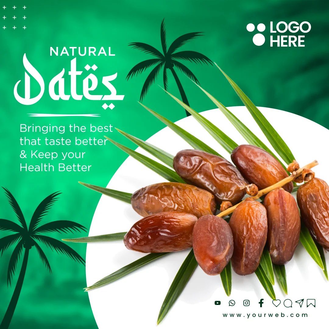 Premium Natural Kalmi Dates Promotional Design PSD Template For Food & Consumer & Dryfruits Industry