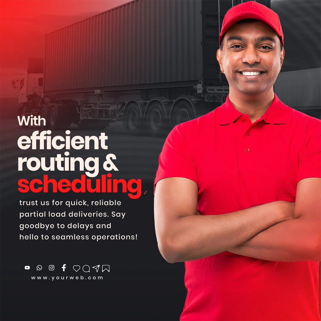 Efficient Routing & Scheduling Shipment Services Promotional PSD Template For Logistics & Transport Companies
