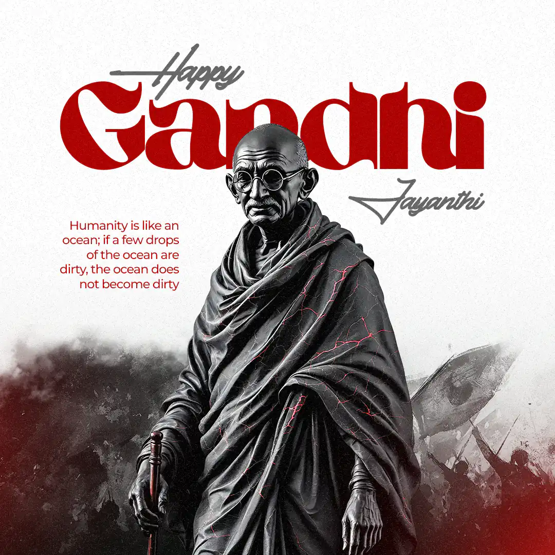 Gandhi Jayanti PSD Template – Realistic 3D Statue with Abstract Background