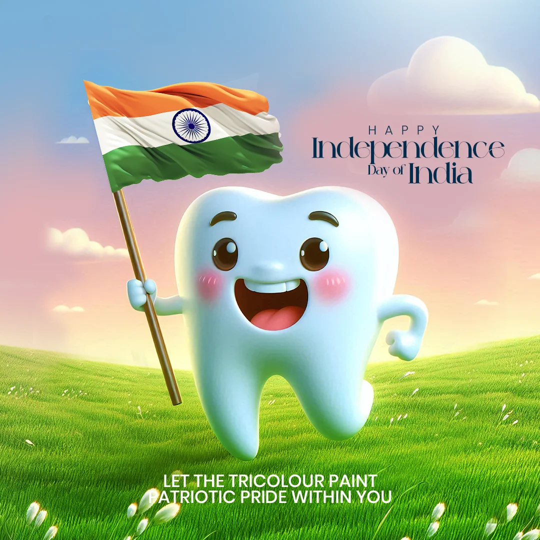 Independence Day Dental Care Template Tooth Character with Indian Flag PSD
