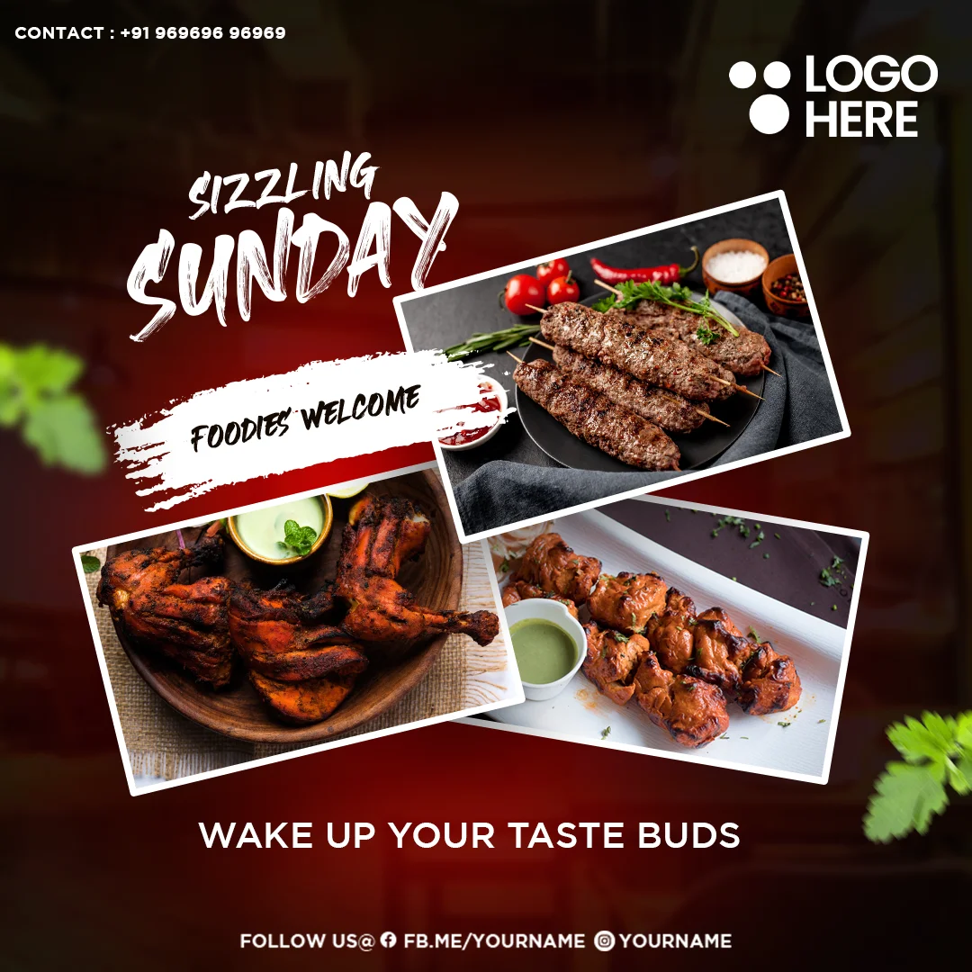 Sizziling Sunday Foodie Invitation Social Media Poster PSD Template For Food & Restaurant Industry